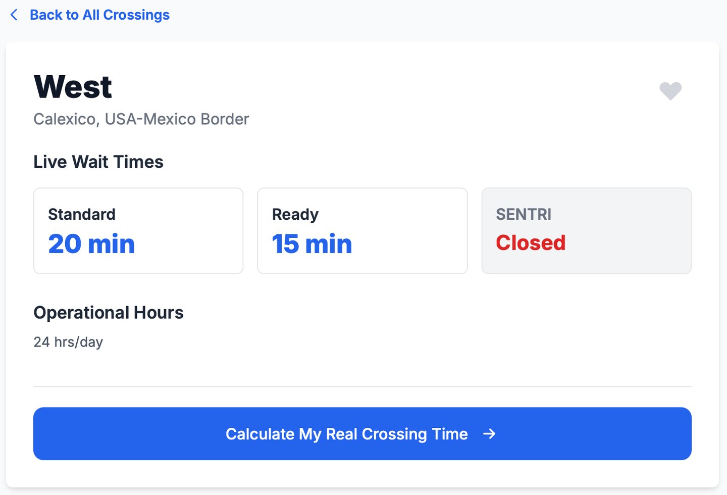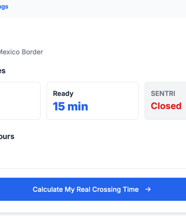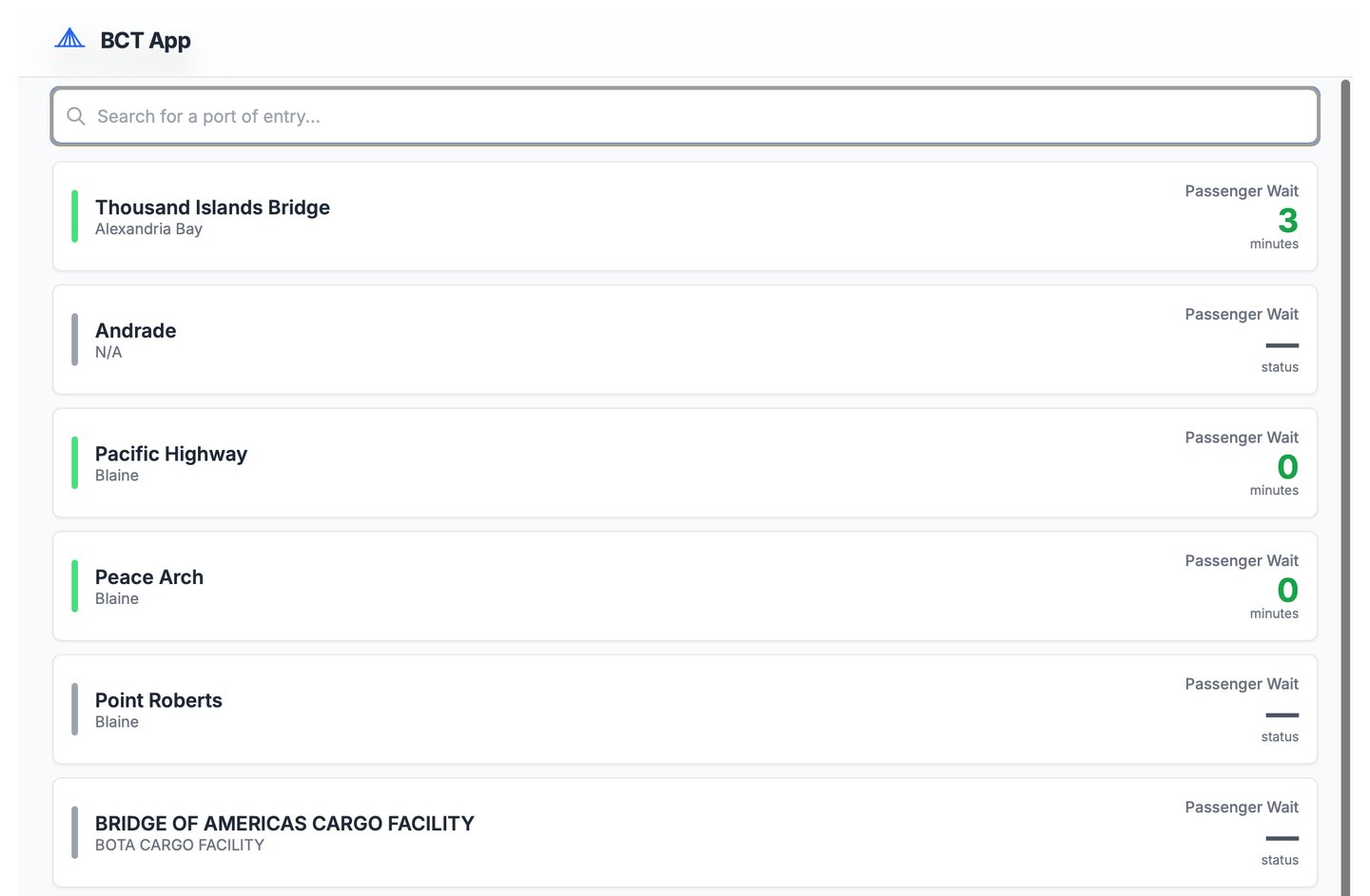 Border Crossing Times, USA - Canada Border, Mexico - USA Border. CBP Border Wait Times.
