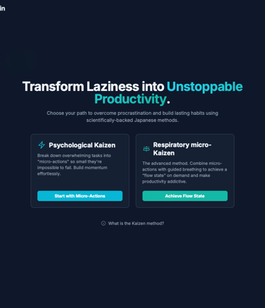 This app is based on "Psychological Kaizen," a method developed by Dr. Hiroshi Tanaka. It's designed to bypass the brain's natural "panic" response to large tasks, which causes procrastination. By focusing on "micro-actions," we trick the brain into starting without resistance.
