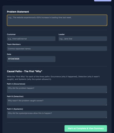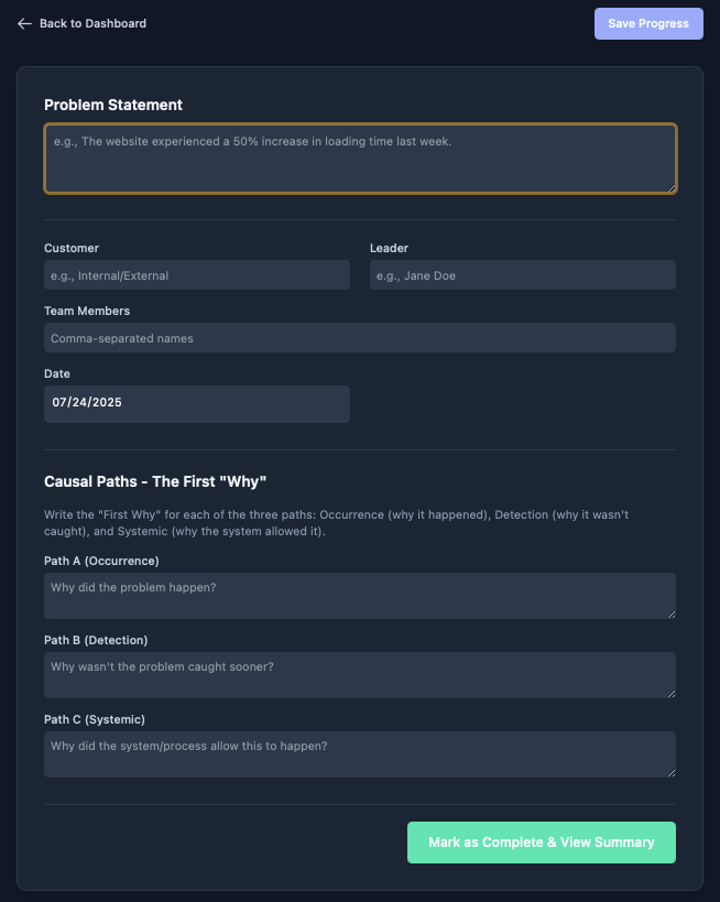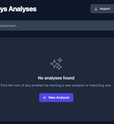 Identify root causes using the 5 Whys methodology easily. Import previous analysis (.json), encrypted files, e-mail sharing, local backup and browser saving.